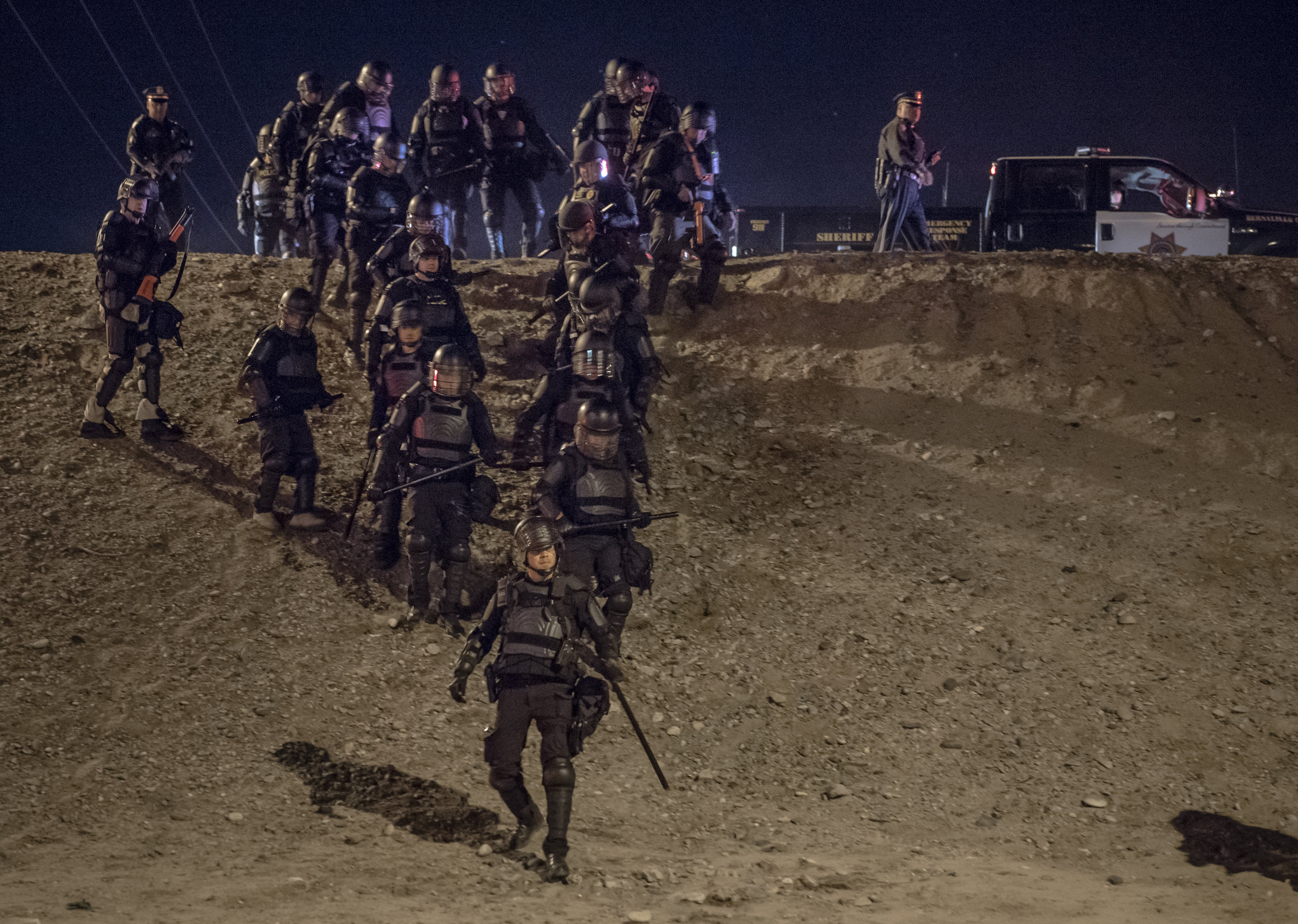 Mounted police get in position to remove protesters in Albuquerque.